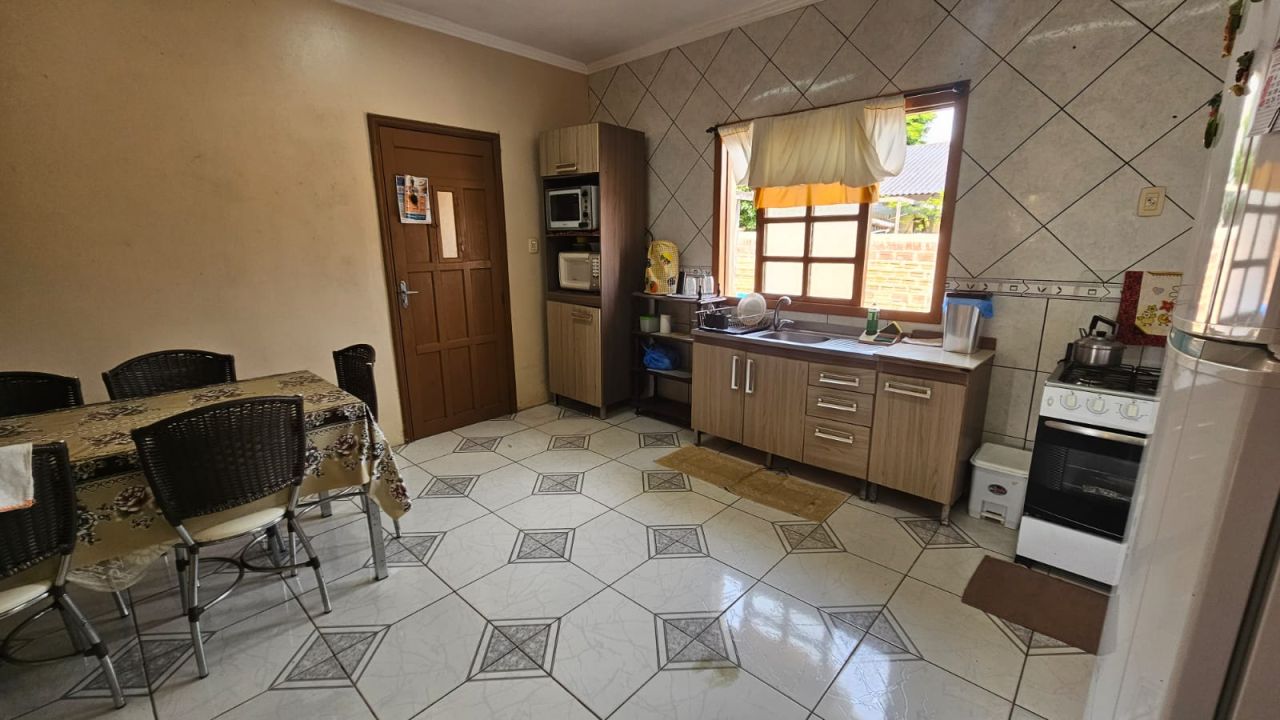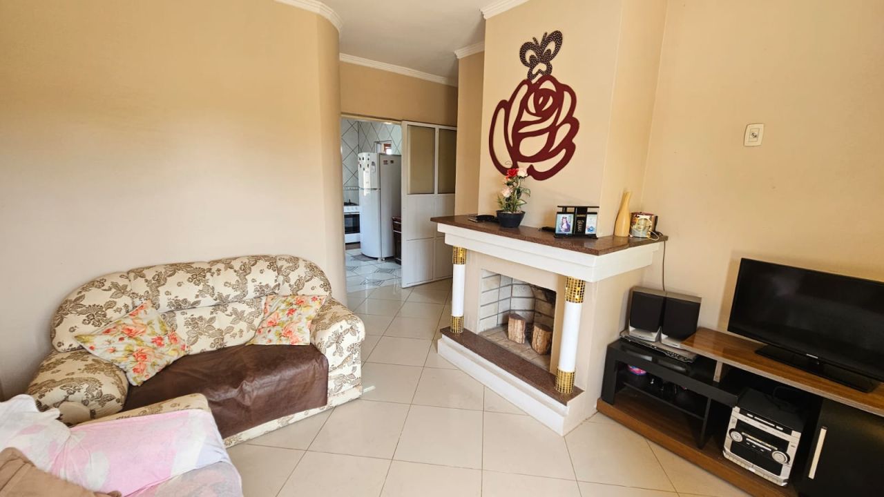 Possui 3 Dormitórios, sendo um suíte, sala com lareira, cozinha,