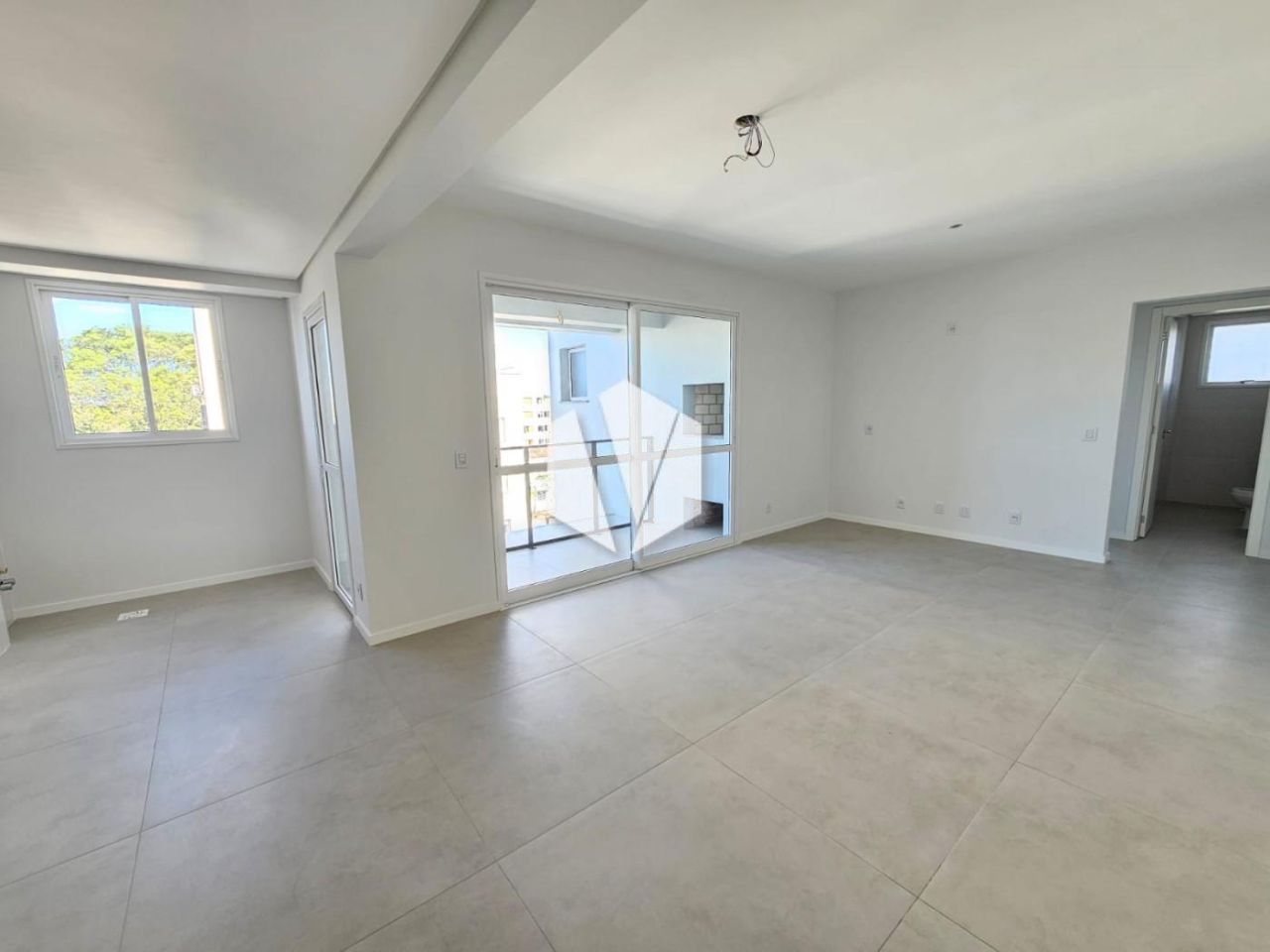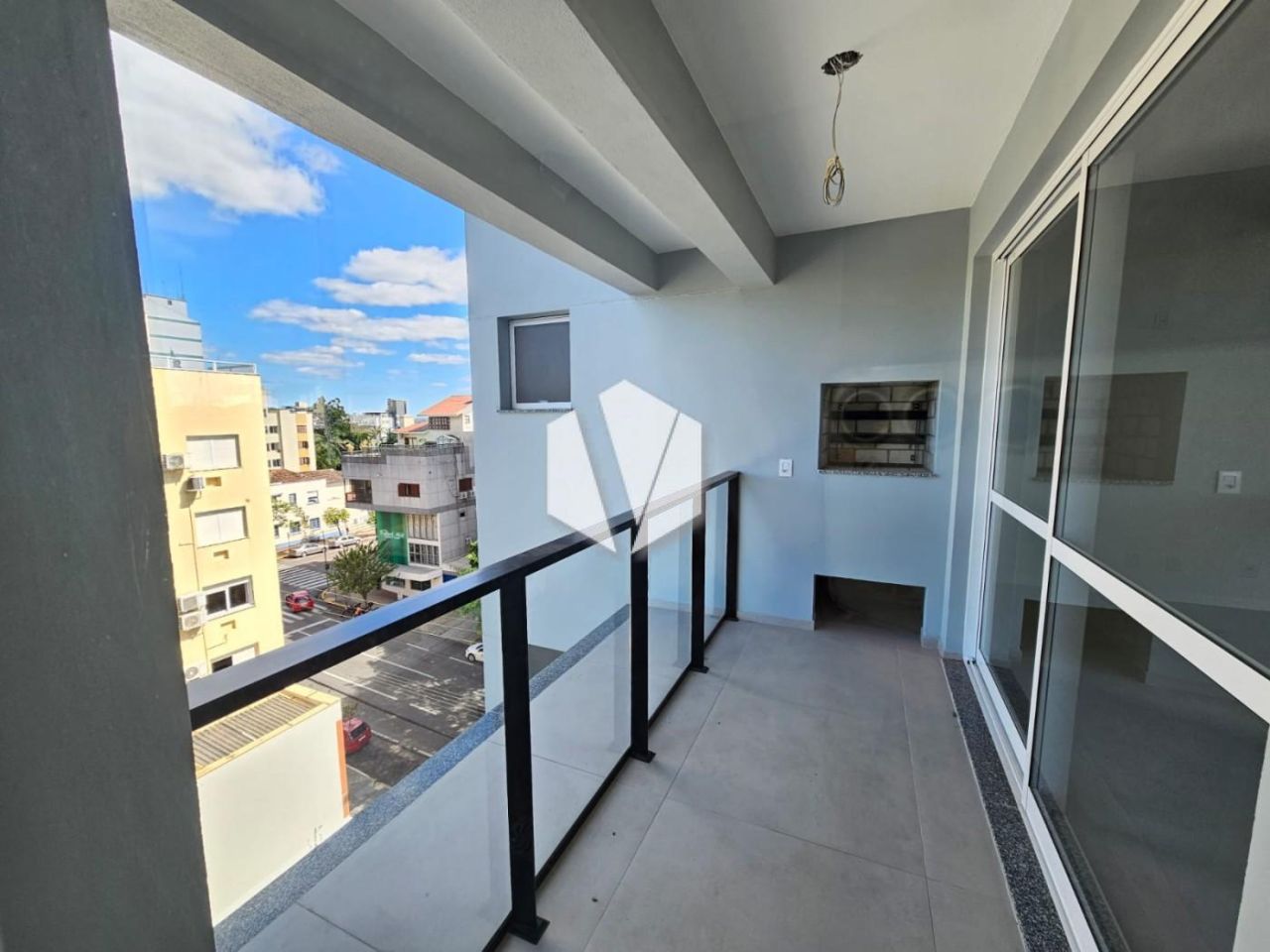 sacada na sala com churrasqueira e sacada na Suite.