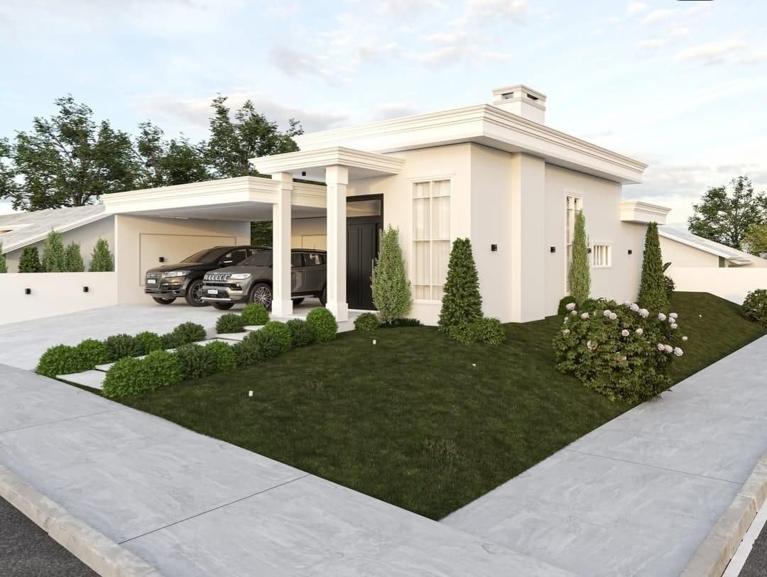 Estilo Neoclássica, possui 147,56m², distribuídos em três dormitórios (uma suíte), sala de estar com lareira, integrada com a cozinha,